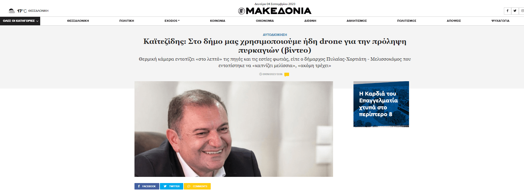 ThessToday: Καϊτεζίδης: Χρησιμοποιούμε ήδη Drone για την πρόληψη πυρκαγιών – Θερμική κάμερα εντοπίζει κάθε «πηγή» πυρκαγιάς