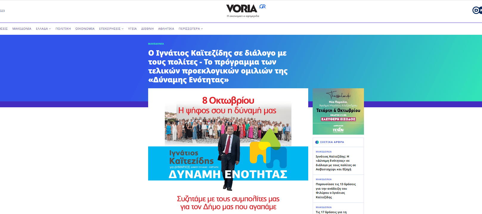 Voria: Ο Ιγνάτιος Καϊτεζίδης σε διάλογο με τους πολίτες – Το πρόγραμμα των τελικών προεκλογικών ομιλιών της «Δύναμης Ενότητας»