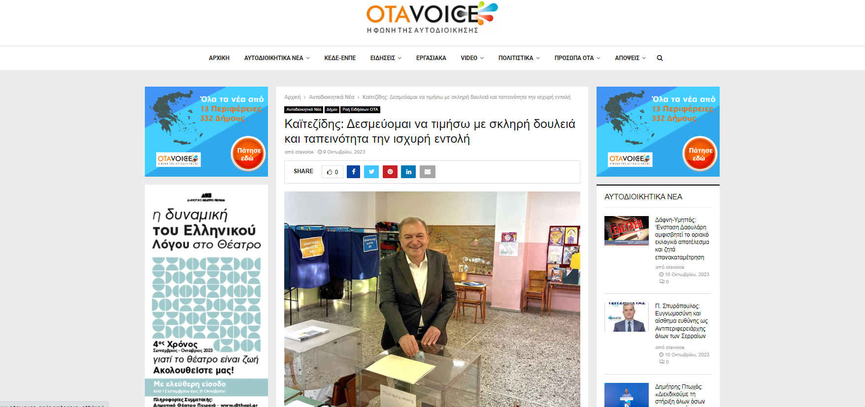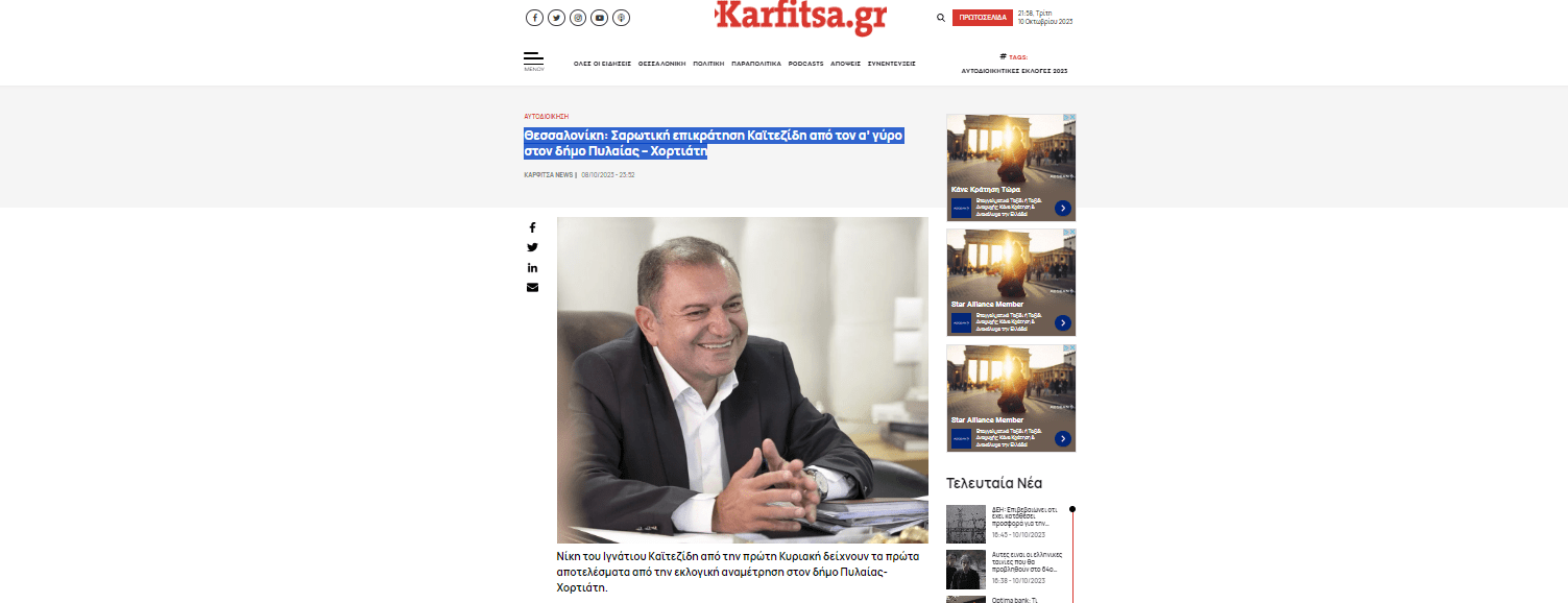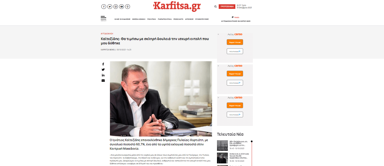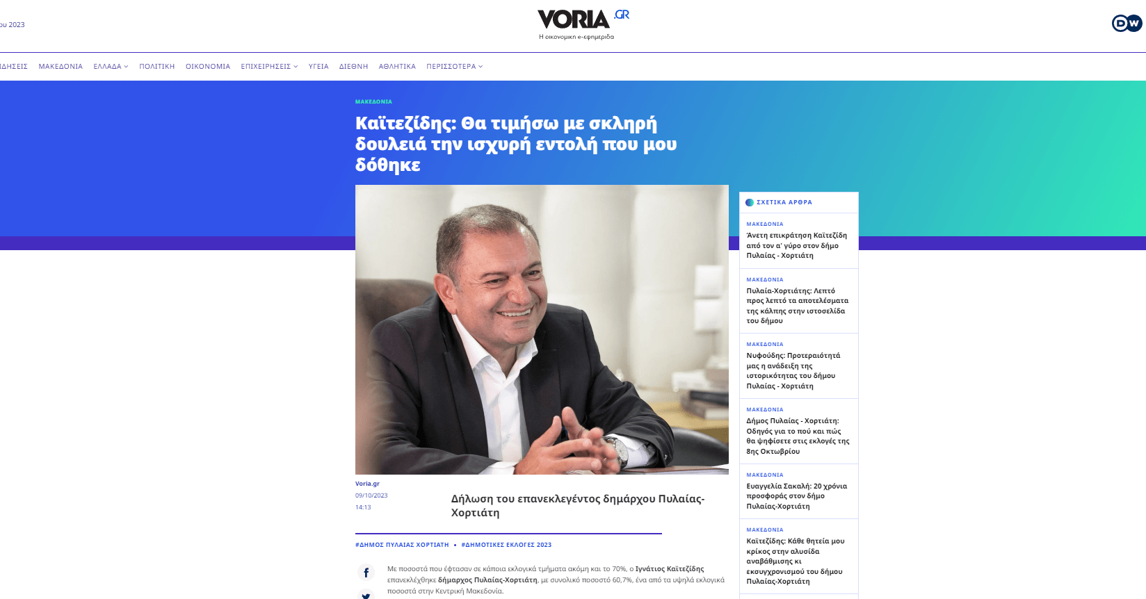 Thes.gr: Καϊτεζίδης: “Με τη σαρωτική τους υποστήριξη οι συμπολίτες μου τίμησαν το μεγάλο έργο της θητείας μας”