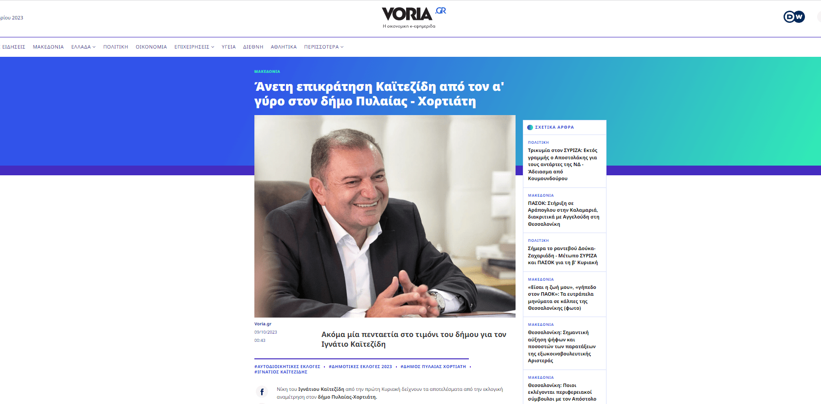 Voria.gr: Κάθε θητεία μου κρίκος στην αλυσίδα αναβάθμισης κι εκσυγχρονισμού του δήμου Πυλαίας-Χορτιάτη