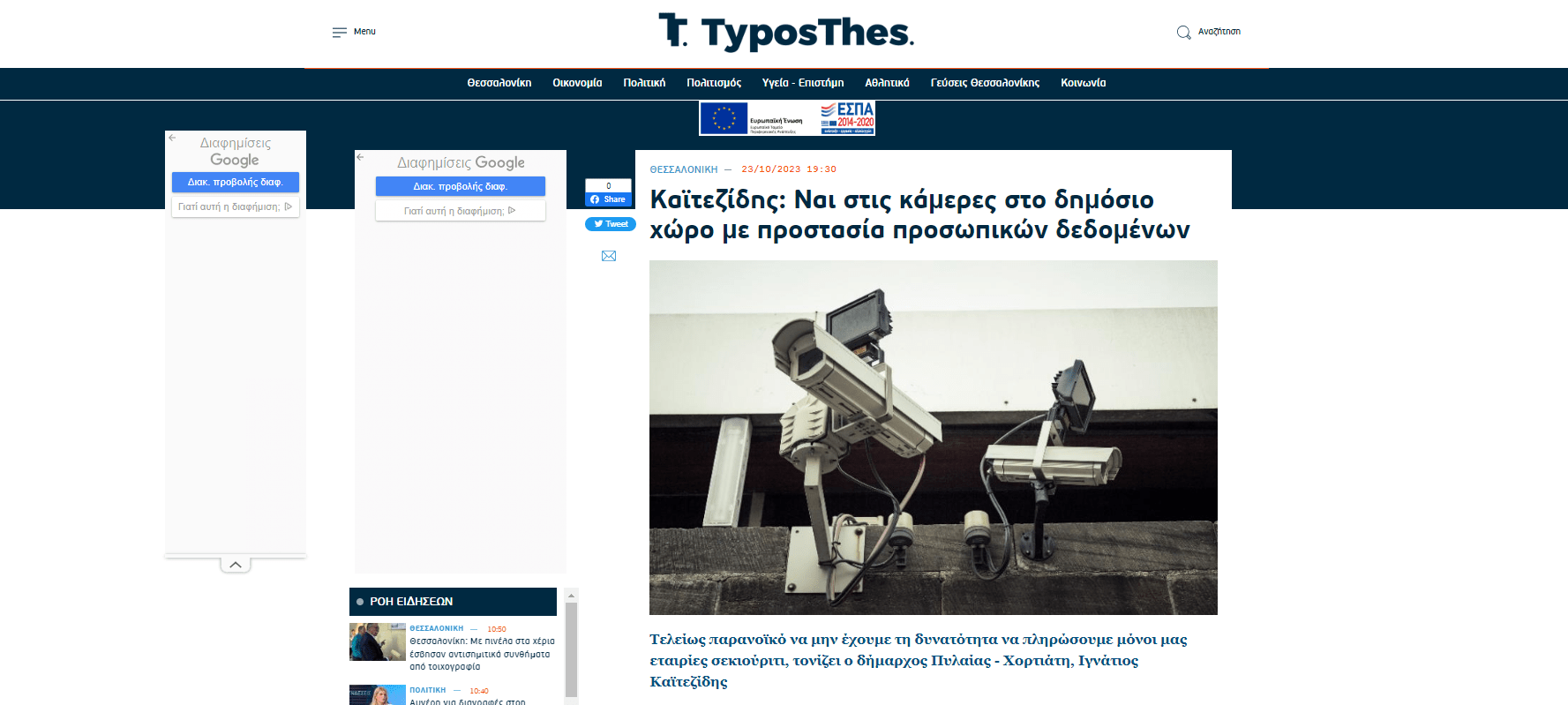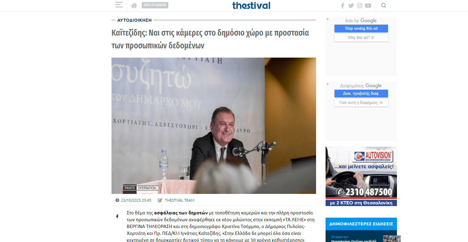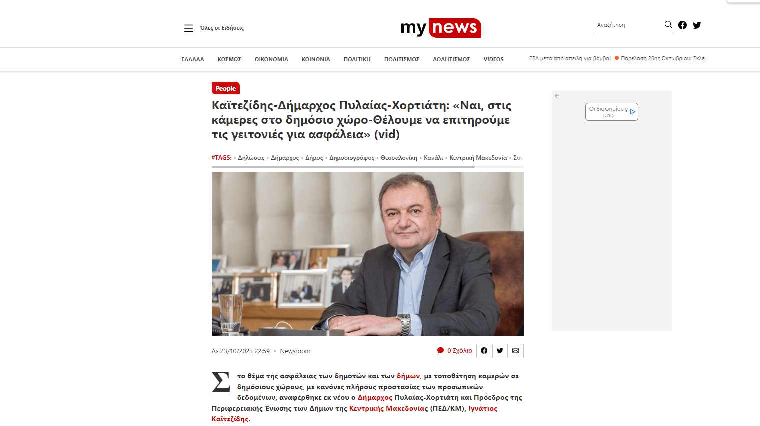 My news: Καϊτεζίδης-Δήμαρχος Πυλαίας-Χορτιάτη: “Ναι, στις κάμερες στο δημόσιο χώρο-Θέλουμε να επιτηρούμε τις γειτονιές για ασφάλεια”