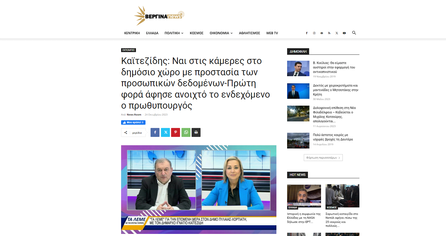 Vergina news: Καϊτεζίδης: Ναι στις κάμερες στο δημόσιο χώρο με προστασία των προσωπικών δεδομένων-Πρώτη φορά άφησε ανοιχτό το ενδεχόμενο ο πρωθυπουργός