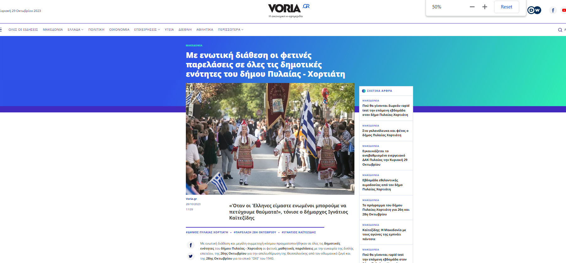Voria: Με ενωτική διάθεση οι φετινές παρελάσεις σε όλες τις δημοτικές ενότητες του δήμου Πυλαίας – Χορτιάτη