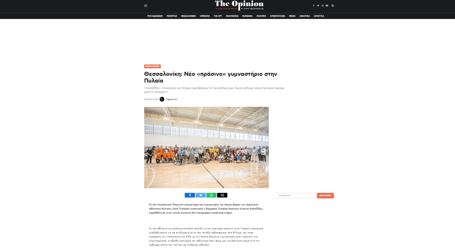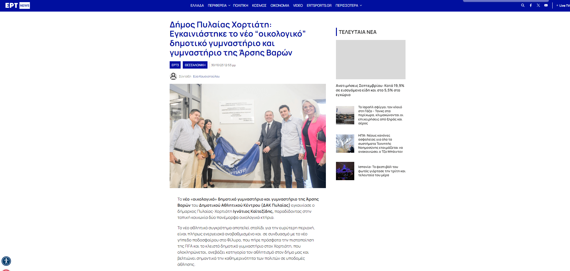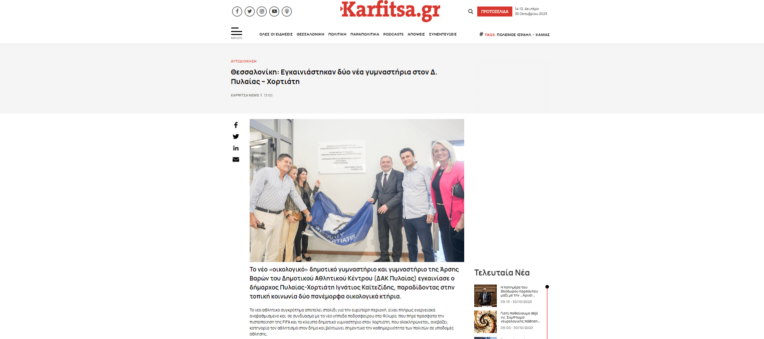 Ertnews: Δήμος Πυλαίας Χορτιάτη: Εγκαινιάστηκε το νέο “οικολογικό” δημοτικό γυμναστήριο και γυμναστήριο της Άρσης Βαρών