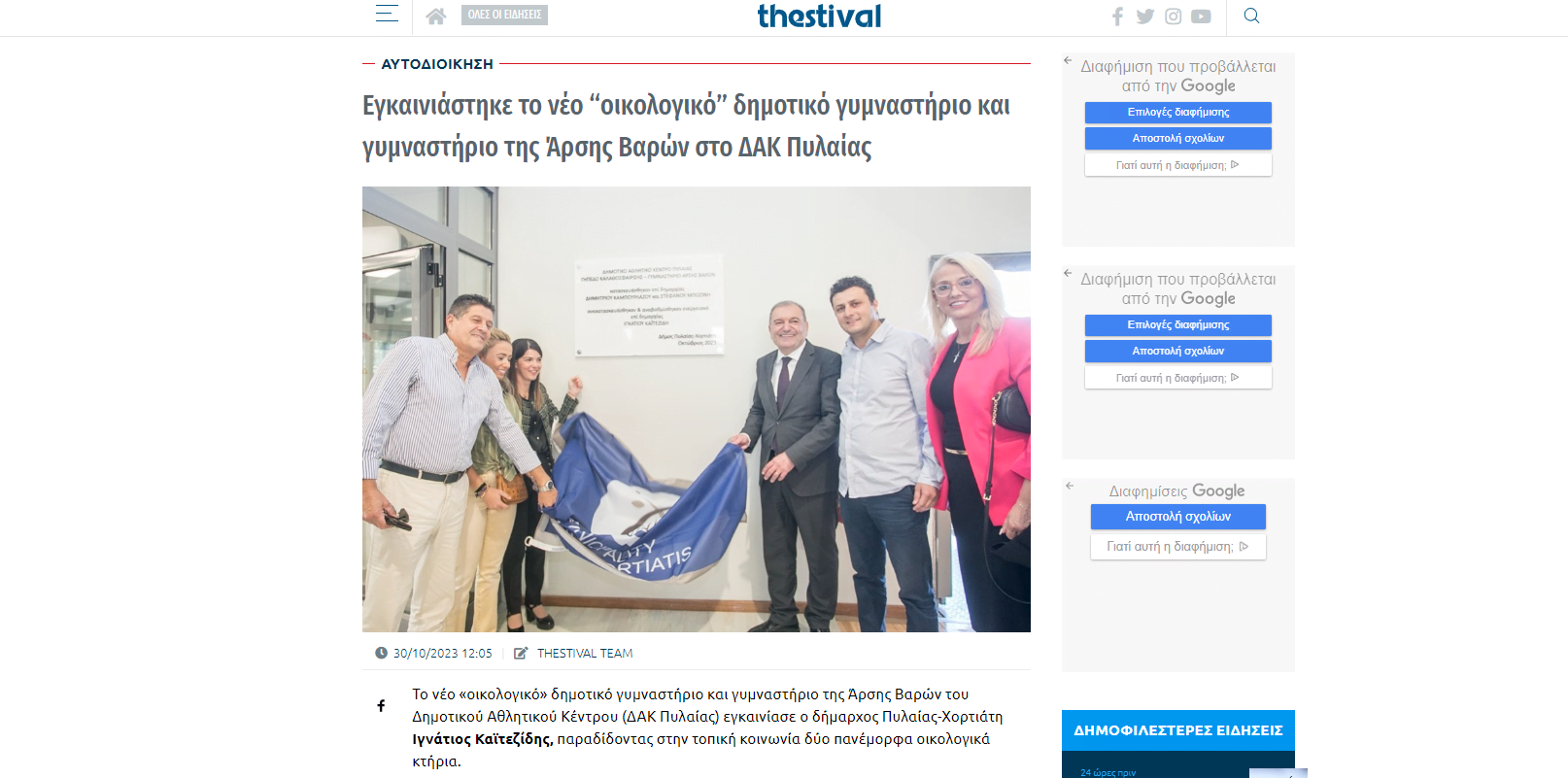 Thestival: Εγκαινιάστηκε το νέο “οικολογικό” δημοτικό γυμναστήριο και γυμναστήριο της Άρσης Βαρών στο ΔΑΚ ΠυλαίαςThestival: